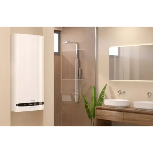 The TESY BelliSlimo 80L Geyser is a premium, smart electric water heater engineered for modern households seeking energy-efficient and space-saving hot water solutions. With an 80-liter tank capacity, this wall-mounted boiler offers flexible vertical and horizontal installation, making it ideal for compact urban homes and stylish interiors. Powered by 2400W and operating on a 220V supply, it efficiently heats water from 15°C to 65°C in approximately 130 minutes, reaching a maximum temperature of 70°C under a working pressure of 8 bar. Designed with Class B energy efficiency, ceramic glass tank protection, and INSUTECH insulation, the TESY BelliSlimo 80L ensures long-lasting performance and reduced energy consumption. Its advanced features include PISTON EFFECT for optimized water flow, Eco Smart Mode for intelligent energy savings, Work on Demand, Boost Function, and Quick First Shower for instant comfort. The Double Tank design enhances heating speed and water availability, while Vacation Mode conserves power during extended absences. The intuitive CRYSTAL TECH LCD display with touch screen controls and IP24 protection rating ensures safe and user-friendly operation in damp environments. With TESY Cloud Wi-Fi connectivity, users can remotely monitor and control their TESY 80L water heater via smartphone or internet, offering unmatched convenience and smart home integration. Whether upgrading your bathroom or investing in a reliable hot water system, the TESY BelliSlimo 80L combines advanced technology, elegant design, and superior performance, making it a top-rated choice for residential water heating.