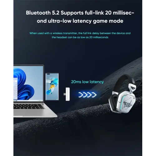 The Thunderobot HL505 Shadow Wing headset leverages Bluetooth 5.2 technology and a dedicated wireless transmitter to deliver a full-link latency as low as 20 milliseconds, making it a powerhouse for competitive gaming and real-time media. This ultra-low latency mode ensures that audio syncs perfectly with on-screen action, eliminating delays that can disrupt gameplay or streaming. Whether you're immersed in fast-paced FPS battles or coordinating with teammates in strategy games, the HL505’s 20ms game mode provides a responsive, lag-free experience across laptops, smartphones, and consoles. Instant sound feedback, sharper reaction times, and a true edge in performance — all wrapped in a sleek, high-tech design that complements your setup.