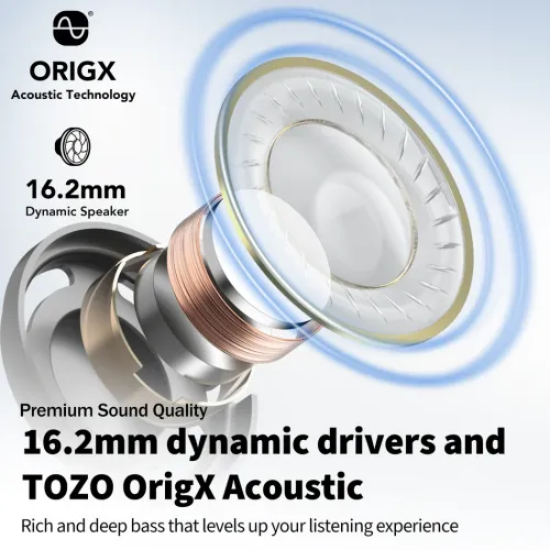 | Others | Audio codec: AAC/SBC TOZO App Tozo OrigX Acoustic Technology IPX8 Waterproof |
