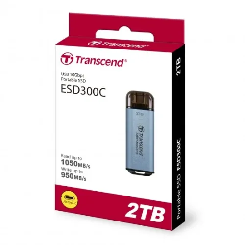The Transcend ESD300C 2TB USB Type-C Portable SSD is the smallest portable SSD with a 10 Gbps transfer rate and a capacious storage capacity of up to 2TB, allowing you to transfer massive amounts of information in the blink of an eye. The ESD300C is a simple and efficient external storage solution that is compatible with all USB Type-C devices.