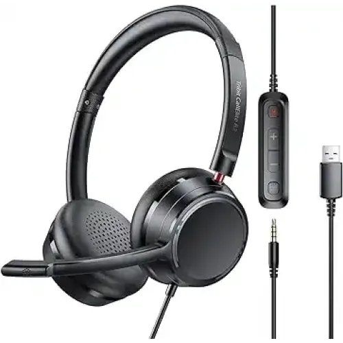 The Tribit CallElite 83 is a stereo-wired Headphone with a crisp, pleasant sound. The headphone has 40-mm drivers that produce a durable and balanced sound. The headphone also contains a noise-canceling microphone that helps reduce background noise and improve voice quality. The headphone includes two interfaces: a 3.5 mm jack and a USB socket, allowing it to be connected to a variety of devices such as computers, phones, tablets, and so on. The Tribit CallElite 83 Stereo Wired Headphone also contains a mute button and in-line controls for conveniently adjusting the volume, playing or pauseing music, answering or rejecting calls, and activating the voice assistant. Because the headphone is built for phone headset use, it is suitable for online meetings, calls, gaming, and so on. The product dimensions are 2.6x2.76x7.36 inches, and the item weight is 0.52 lbs. The headset is black in color and boasts a sleek and ergonomic design. The Tribit CallElite 83 is an excellent alternative for users looking for a dependable and convenient wired headphone for communication.