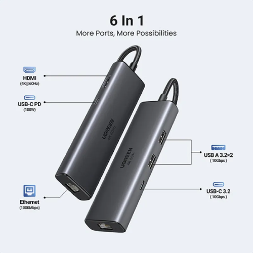 In Bangladesh, you can get original Ugreen CM512 6-in-1 Type-C Multifunction Hub #45000 From CCTV Shop. We have a large collection of latest Ugreen Hub and Docks to purchase. Order Online Or Visit your Nearest CCTV Shop Shop to get yours at lowest price. The Ugreen CM512 6-in-1 Type-C Multifunction Hub comes with 1 Year warranty.