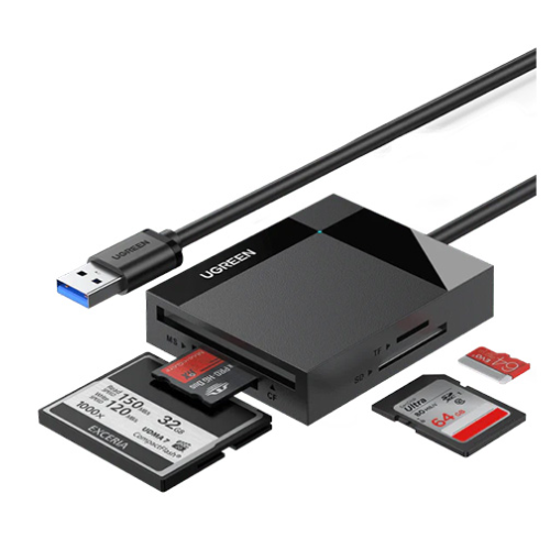 With the Ugreen CR125 3-in-1 Type-A Male to SD-TF Card Reader, you may enable seamless data transfer. With this small and multifunctional card reader, which has a stylish black style that goes well with any setup, simple file management is within reach. Card Reader may be connected to a variety of devices, such as laptops, desktop computers, tablets, and smartphones, thanks to its USB 2.0 Type-A Male interface. Additionally, it guarantees compatibility with Linux, macOS, and Windows.This card reader is compatible with SDHC cards up to 32GB and 2TB, as well as micro SDHC and micro SDXC cards. It has Secure Digital (SD) and Micro SD (TF) card slots. The Ugreen CR125 meets your demands whether you're a photographer, videographer, or just need to transmit data while you're on the road.Up to 480 Mbps of dependable data transfer speed are provided. You can monitor the progress of the transfer with the embedded LED indicator. The card reader can be used without the need for additional software or drivers because it is plug-and-play compatible.The card reader is small and light, measuring just 55 x 17 x 8 mm and weighing 10g. It might easily slip into your pocket or backpack. Its hot-swappable feature allows you to switch cards without stopping activities.Because of the built-in protections against overcurrent, overvoltage, and short-circuit situations, you can relax knowing that your data is secure. For all of your data transmission needs, the Ugreen CR125 USB Male to SD-TF Black Card Reader provides stability and assurance.