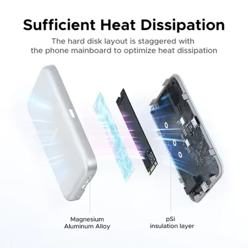 | Others | MagSafe Magnetic Mount Material: Aluminum / Magnesium Alloy Supported Protocol: NVMe / PCIe only Supported SSD Types: M.2 NVMe (M Key & B&M Key) Supported SSD Sizes: 2280, 2260, 2242, 2230 Power Delivery: 100W pass-through charging Cooling System: Passive (Magnesium Alloy + SiO₂ Aerogel) Material: Aluminum / Magnesium Alloy Dimensions: 10.1 × 6.9 × 1.1 cm Color: Grey |