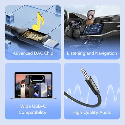 The Vention BIFBF Audio Converter is an excellent product that bridges the gap between contemporary USB-C devices and older 3.5mm AUX audio systems. The Vention BIFBF 1 Meter Audio Converter is ideal for smartphones, tablets, and laptops with a USB-C connector. It connects effortlessly to vehicle stereos, speakers, or headphones, assuring smooth playing of music, podcasts, or navigation audio. Built with a professional DAC (Digital-to-Analog Converter) chip and an enameled copper conductor, it produces crystal-clear, high-fidelity music with precise DAC decoding at a sample rate of 16bit/48KHz, minimizing distortion and keeping audio purity. Its plug-and-play technology requires no driver installation and provides rapid responsiveness for continuous usage. For increased longevity and robust signal transmission, the USB-C male to 3.5mm male interface of the cable has been nickel-plated. The Vention BIFBF is made of high-quality materials such as a TPE jacket, ABS shell, and 29AWG wire gauge, making it both flexible and robust. Its 3.5mm outside diameter makes it compact and portable. At 1 meter in length, it has the perfect reach for usage in automobiles or at home without tangling. The Vention BIFBF 1 Meter Audio Converter is an ideal alternative for those who want dependable connectivity and exceptional sound quality in a sleek, practical design.