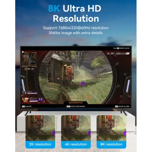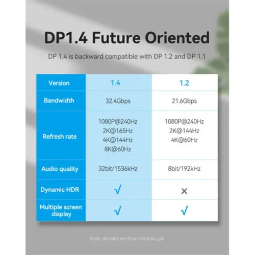 The Vention HCDBI 3 Meter 8K DisplayPort 1.4 Cable is a high-quality cable that provides excellent video and audio performance for gaming, entertainment, and professional applications. With compatibility for resolutions of up to 8K at 60Hz, this cable provides ultra-clear pictures with lifelike detail, making it suitable for high-end monitors, graphics-intensive applications, and immersive gaming. It uses DisplayPort 1.4 technology and supports dynamic HDR, which improves brightness, contrast, and color depth for better image quality. The Vention HCDBI 3 Meter DisplayPort Cable also supports premium 32-bit audio channels, resulting in rich and immersive sound that complements the visual experience. It is designed for compatibility and works effortlessly with a variety of devices, including desktops, laptops, gaming PCs, monitors, and graphics cards. The Vention HCDBI 3 Meter DisplayPort Cable is designed for gaming performance, featuring G-Sync and FreeSync support to reduce screen tearing and stuttering for lag-free gameplay. Its 3 meter length allows for flexible deployment in both home and workplace contexts. Gold-plated connectors ensure reliable signal transfer and resistance to corrosion. The shell is composed of strong ABS plastic, and the conductor has been strengthened with silver ion plating to increase conductivity. The Vention HCDBI 3 Meter DisplayPort Cable has multi-layer shielding that includes aluminum foil, GND, and a metal braided layer to provide maximum interference protection. Its 30AWG wire gauge assures consistent signal strength, while the PVC jacket provides durability and flexibility for extended use.