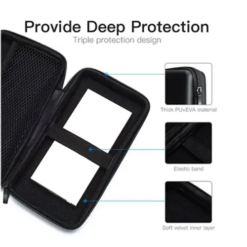 | Input Interface | Type: Storage Bags Pattern: Three-dimensional Type Color: Black Process 1: Hot processing Process 2: Needle car sewing Material: thick PU+EVA Feature 1: HDD Bag Feature 2: Interlayer design Feature 3: For 2.5 Hard Drive Earphones |