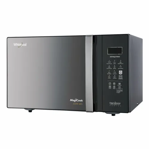 The Whirlpool MAGICOOK CONVECTION Black Mirror 30L Microwave Oven is an advanced kitchen appliance that combines style, performance, and health-focused features for modern cooking needs. With a generous 30-litre capacity, this Whirlpool MAGICOOK CONVECTION Black Mirror Oven is perfect for families who love experimenting with different cuisines. It comes with 200 Auto Cook Programs and convenient 2-minute recipes, making it easy to prepare a wide range of dishes with minimal effort. Designed for health-conscious users, its Zero Oil Cooking feature ensures delicious meals without the added fat, making it smarter than air fryers and ideal for guilt-free indulgence. The Whirlpool MAGICOOK CONVECTION Black Mirror Microwave Oven is built with a premium stainless steel cavity, providing even heat distribution for perfect results every time, whether you’re baking, grilling, roasting, or reheating. Offering a maximum output power of 900W, supported by 1400W input power, 1100W grill power, and a powerful 2500W convection system, this oven guarantees fast and efficient cooking. The sleek LED display panel, combined with feather-touch membrane controls, ensures a smooth and intuitive user experience, while the side-swing door adds convenience. Its elegant black finish and compact design with dimensions 33.5 x 52 x 51 cm make it a stylish addition to any modern kitchen. Whether you want to bake a cake, grill vegetables, or cook a full-course meal, the Whirlpool MAGICOOK CONVECTION Black Mirror Oven delivers exceptional performance and versatility, making it an essential appliance for every home.