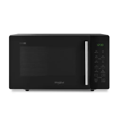 The Whirlpool Magicook Pro 25GE Microwave Oven is a premium kitchen appliance that combines style, performance, and convenience to upgrade your cooking experience. With its 25-litre capacity, the Whirlpool Magicook Pro 25GE Oven is perfectly suited for families, offering enough space to prepare a variety of meals with ease. Equipped with a powerful 900W output and 7 power levels, it delivers precise heating, grilling, and cooking results for different types of food. The Whirlpool Magicook Pro 25GE also features auto-cook menus that let you prepare popular dishes at the touch of a button, while the express cooking function ensures quick meals when you are short on time. Designed with a feather touch membrane control panel and a bright LED display, it provides effortless operation and a modern interface. The durable superior powder-coated interior makes cleaning simple and long-lasting, while the side swing door adds to user convenience. Finished in an elegant black design, the Whirlpool Magicook Pro 25GE Microwave Oven not only enhances the aesthetics of your kitchen but also ensures efficient, reliable, and versatile cooking every day.