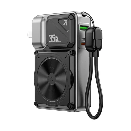 The Wiwu Knight 10000mAh Black 35W Magnetic Wireless Charging Power Bank is a sleek, high-capacity charging solution engineered for tech-savvy users who demand speed, versatility, and convenience in one compact device. Designed to support both Apple and Android ecosystems, this WI-P057 power bank boasts a robust 10000mAh capacity, featuring a rated output of 5300mAh and an impressive total output of 35W, ensuring fast and efficient charging across multiple devices. Its multi-interface connectivity including USB, USB Type-C, Lightning, and magnetic wireless charging caters to a wide range of gadgets, while the built-in charger and included cable eliminate the need for carrying extra accessories. With support for AC input (100V–240V, 50/60Hz) and output currents up to 2.4A across wired ports, plus 5W max for wireless charging, it delivers reliable performance whether you're at home, in transit, or on the move. The minimalist black finish adds a touch of sophistication, and although it lacks a display or flashlight, its streamlined design prioritizes portability and ease of use. Engineered with an energy conversion rate exceeding 60% and fast-charging capability, the Wiwu Knight Series power bank is an ideal companion for professionals, travelers, and everyday users seeking a dependable, all-in-one charging solution that combines style with substance.