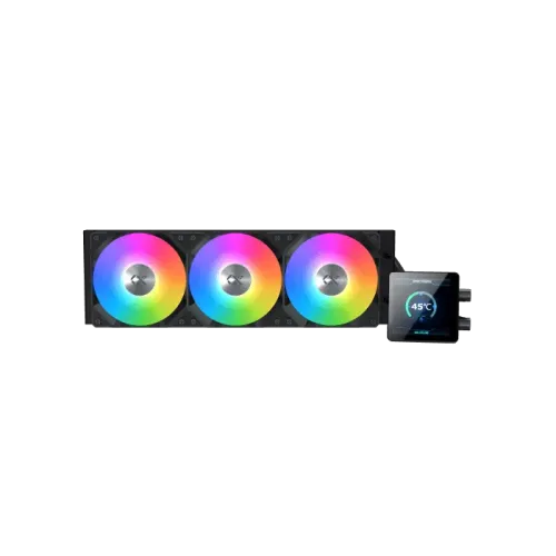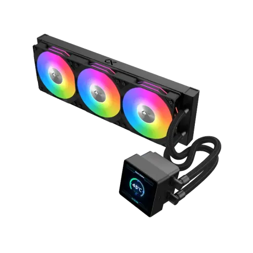 The Xigmatek Connect 360 Liquid CPU Cooler is engineered to deliver exceptional thermal performance for modern gaming rigs, high-end productivity systems, and overclocked processors. This premium Xigmatek Connect 360 CPU Cooler comes equipped with a robust 360mm aluminum radiator measuring 397×120×27mm, paired with three high-efficiency 80CFM fans that operate between 800–2100±10% RPM to ensure rapid heat dissipation. With 3.14mm-H2O air pressure, 29dBA low-noise operation, and long-life hydro bearings, the fans provide strong cooling while maintaining silent operation. The pump uses a durable ceramic bearing, runs at 12VDC, consumes ≤5.76W, and maintains a quiet 27dBA noise level—making the Xigmatek Connect 360 ARGB CPU Cooler ideal for users who demand both performance and silence. Its premium 3.4-inch LCD pump head with ARGB lighting adds a customizable visual element, allowing builders to personalize system aesthetics with ease. The cooler also features 450mm black-sleeved tubing for better flexibility and cleaner cable management, along with a compact pump size of 90×76×67mm. Designed for wide compatibility, the Xigmatek Connect 360 CPU Cooler supports Intel LGA 1851/1700/1200/115X/20XX and AMD AM5/AM4 sockets, making it suitable for almost any next-gen PC build. With its powerful cooling capacity, striking LCD display, reliable components, and modern ARGB design, the Xigmatek Connect 360 Liquid CPU Cooler stands out as a top choice for enthusiasts seeking maximum performance and premium aesthetics.