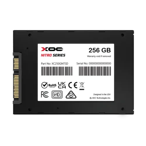 The XOC Nitro XCNTS256G 256GB 2.5" SATAIII SSD is a powerful and efficient storage drive that is ideal for consumers looking for increased speed and durability. The XOC Nitro XCNTS256G SSD has 256GB of storage space with a SATA III 6 GB/s interface, ensuring smooth, reliable, and fast data transfer for both desktops and laptops. This SSD's 3D NAND flash technology provides increased endurance and power efficiency, making it suitable for system updates, gaming, and professional applications. The XOC Nitro 256GB SATA SSD has excellent read rates of up to 550 MB/s and write speeds of up to 480 MB/s, resulting in shorter boot times, faster file loading, and smoother multitasking. It is long-lasting, with a Mean Time Between Failures (MTBF) of up to 2,500,000 hours and a Total Bytes Written (TBW) rating of up to 150, guaranteeing consistent performance for many years. Furthermore, the XOC Nitro XCNTS256G 256GB SSD is impact resistant and operates well in temperatures ranging from 0°C to 70°C, making it a dependable and adaptable solution for any computer environment. Whether you're updating your PC or laptop, the XOC Nitro XCNTS256G will provide a considerable increase in performance, stability, and overall system responsiveness.