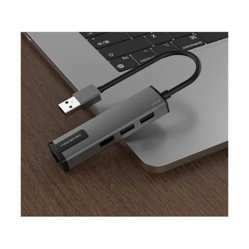 The Yuanxin X-2518A USB Male to Tri-USB & LAN Female Silver Hub is a smart communication solution that elegantly blends adaptability and functionality. On one end, it has a USB Male port, and on the other, it has a Tri USB & LAN Female arrangement, allowing a diverse range of communication choices. With three USB ports, this Hub enables users to connect numerous peripherals at the same time, increasing convenience and improving device capabilities. While no exact networking speed figures are provided, the X-2518A offers effective data transmission and networking capabilities. The X-2518A, made of sturdy Aluminum Alloy, not only has a stylish silver appearance but also conforms with the USB2.0 standard, assuring stable and fast data transfer. The Hub is compatible with USB1.1, which demonstrates its versatility. It provides a full-duplex network connection, supporting suspend and remote wake-up functions for enhanced power management. The X-2518A operates as a USB bus-powered device, eliminating the need for an additional power supply, which add s to its mobility and convenience. The Hub works with a variety of operating systems, including Windows XP, VISTA, Windows 7, 8, 8.1, 10, Linux, and MAC OS 10.6 and above, making it a versatile option for users on several platforms. The Yuanxin X-2518A offers seamless connection, combining a sleek appearance with modern capabilities to provide consumers with a dependable and effective solution for their networking needs.