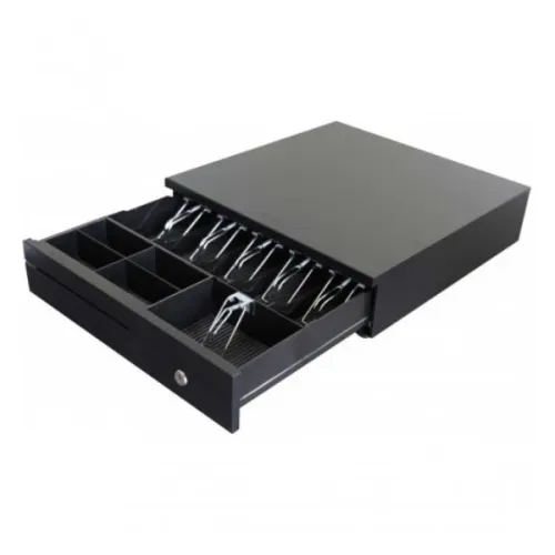 The Yumite HER-405 Cash Drawer is a durable and reliable cash management solution. Designed for usage in supermarkets, restaurants, retail stores, and other commercial settings. This cash drawer, made from a combination of cold steel plate and ABS material, is designed to withstand heavy daily use and provide long-term performance. The Yumite HER-405 Cash Drawer has a large internal layout with six grids for managing paper money and four grids for holding coins, which allows for effective sorting and quick access during transactions. The drawer has a three-position lock with four functional modes, providing increased security and convenience of use for cashiers and employees. With a lifecycle tested up to 1,000,000 cycles, the Yumite HER-405 Cash Drawer delivers consistent performance over time, especially in high-traffic areas. It provides a variety of interface options, including RJ11, RJ12, USB, and RS232, guaranteeing broad interoperability with various point-of-sale systems and simple integration into diverse corporate configurations. This Yumite HER-405 Cash Drawer contributes to a clean and orderly cash station, which not only increases workflow efficiency but also reduces cash-handling errors. Its durable construction and utilitarian design make it a perfect choice for organizations that need to conduct rapid, organized, and secure cash transactions throughout the day. The Yumite HER-405 Cash Drawer's choice of durable materials guarantees that it can withstand repeated opening and closing, while its clear layout promotes better money management and responsibility.