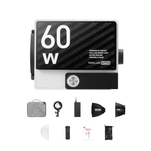 The Zhiyun MOLUS G60 is a universal film light Combo with a 60W power output that is supported by cutting-edge cooling technology.